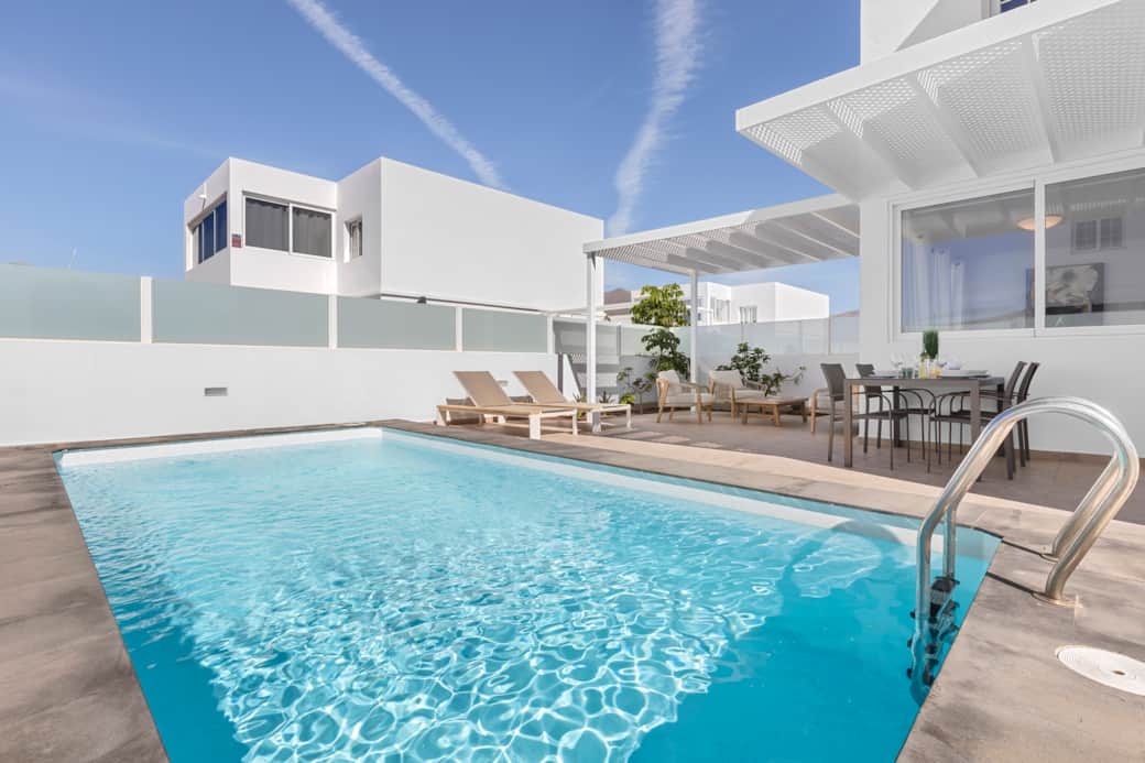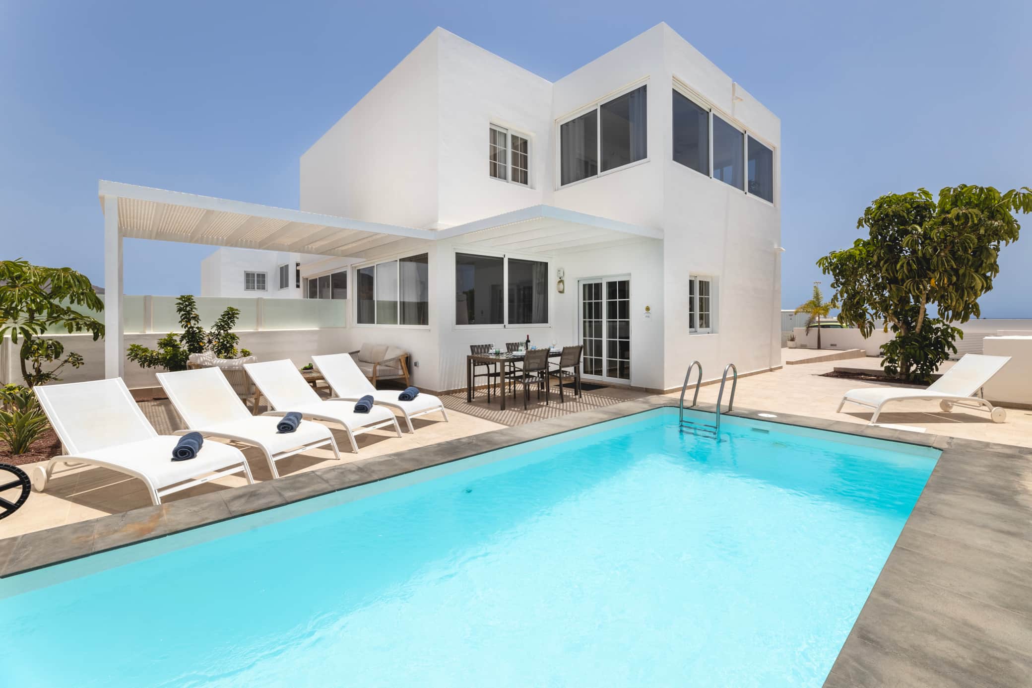 Between the natural monument of Los Ajaches and Playa Blanca, you will find this spectacular villa with sea views, private heated pool and barbecue, ideal for families, couples and groups of friends; a few minutes from the beaches of the south of Lanzarote.